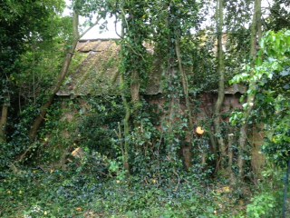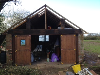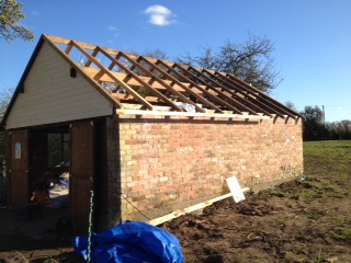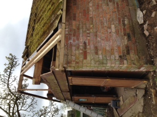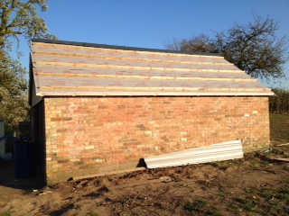 Work on the re-build began on 30 March with the removal of some of the front roof sheets, along with the original frontage, in order to assess the general state of the roof rafters. At this point we discovered that a number of the rafters as well as the complete front would require replacing due to rot and woodworm. The job, like all tasks on an old property, just became more involved.