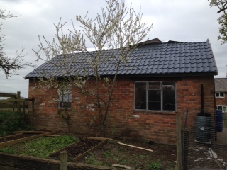 On Saturday Ben and Edgar were on hand and now we were “expert” roofers, the 2nd side went even quicker. The results, as can be seen in the last couple of pics, totally transformed the external look of the garage and have been much admired by a number of passers-by. Sunday dawned to high winds and rain, but the roof was on, lucky or smiled upon? Either way, Sunday was a day of rest.